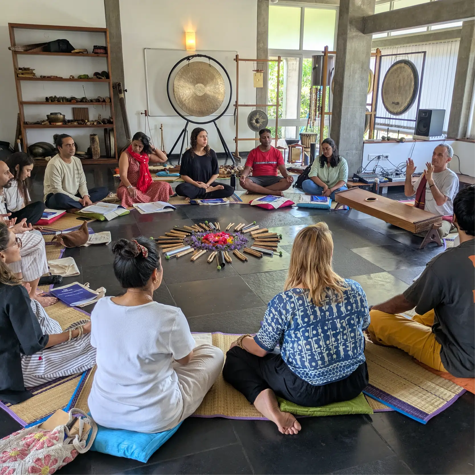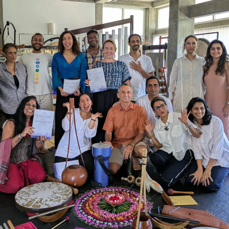Once 150 training hours are gathered through these and other thematic workshops and courses offered by SVARAM, a personal project work can be chosen for 3 months mentored self-study and peer-learning, which culminates in the 4th module of project completion and presentations for certification as a Sound Well-being Practitioner.