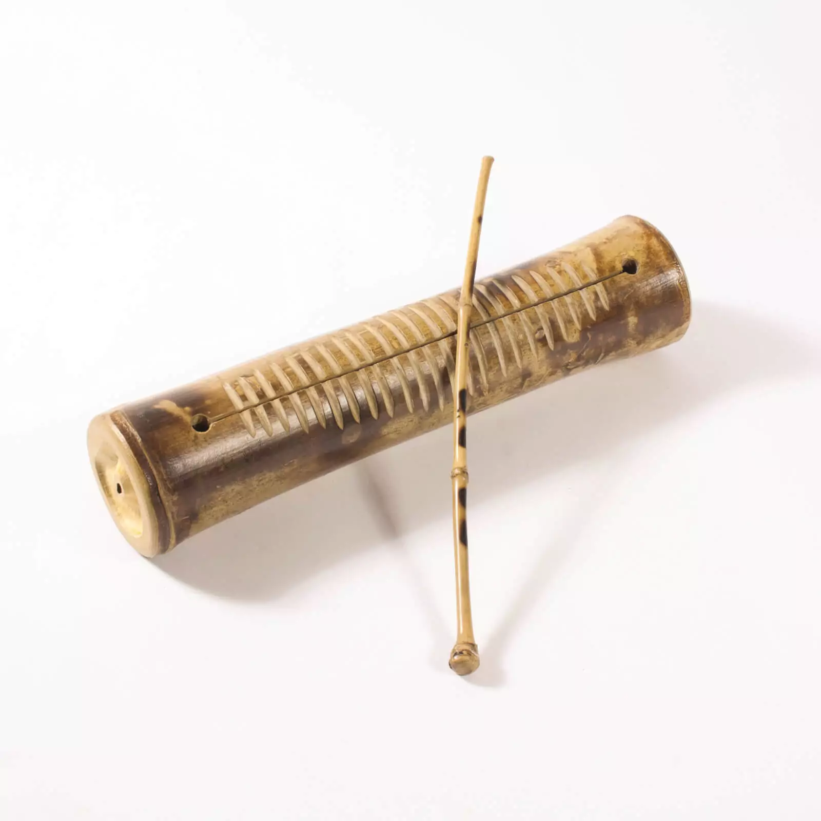 Scrapers belong to the oldest musical instruments and in this simple form offer an exploration of the sound of bamboo. Tapped in different places, it produces a solid and hollow sound, scrapped in manifold ways, it imitates primal speech and its very expressive sound maker can be lots of fun.