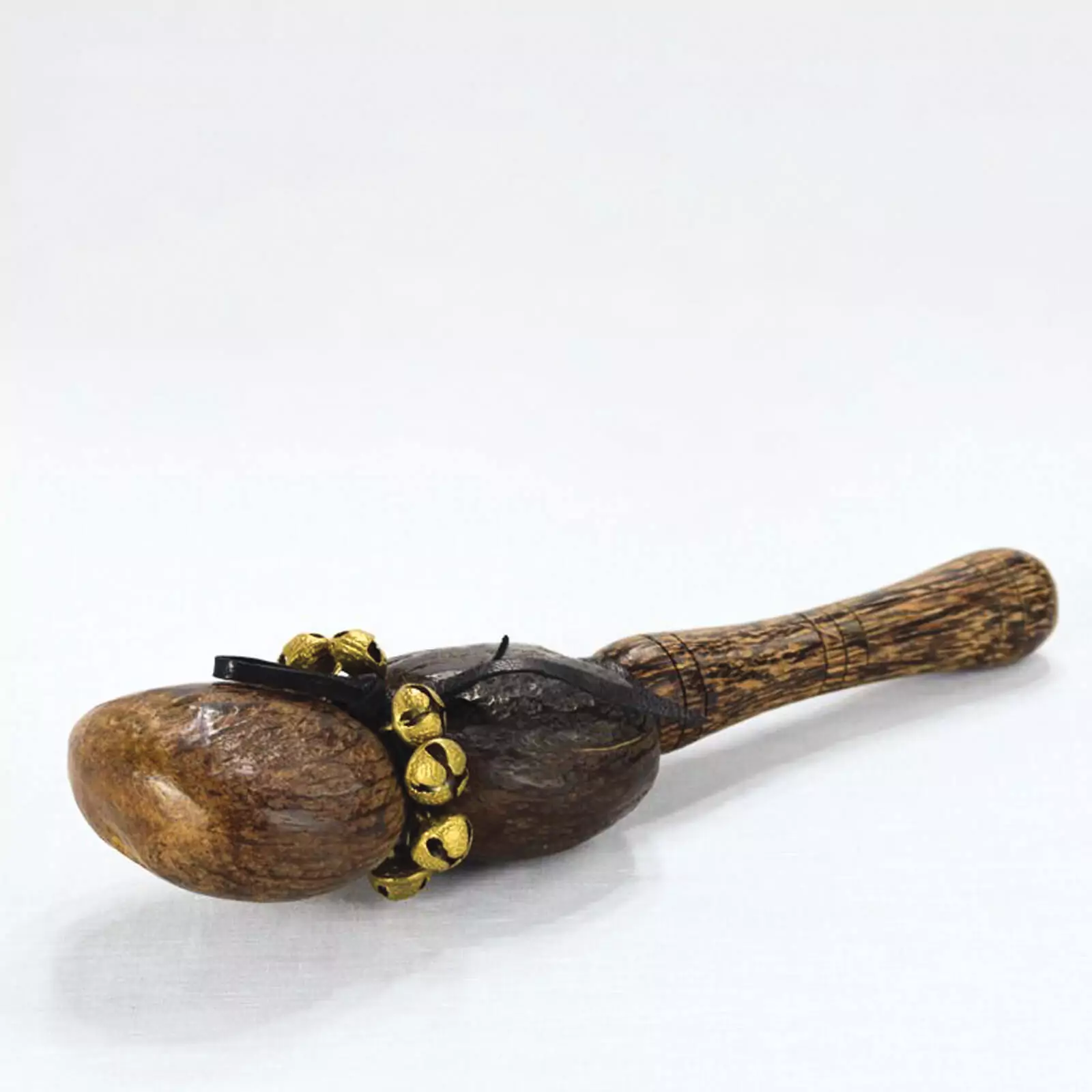 Palmyra nut, single, combining a seed shaker and dancing bells, is an original instrument from the heart of Tamil Nadu, using materials from one of its most characteristic and utilitarian plants – the Palmyra palm-tree, used for food, building material, thatch, and medicine. Let the sounds of South India invite you to a simple musical excursion.
