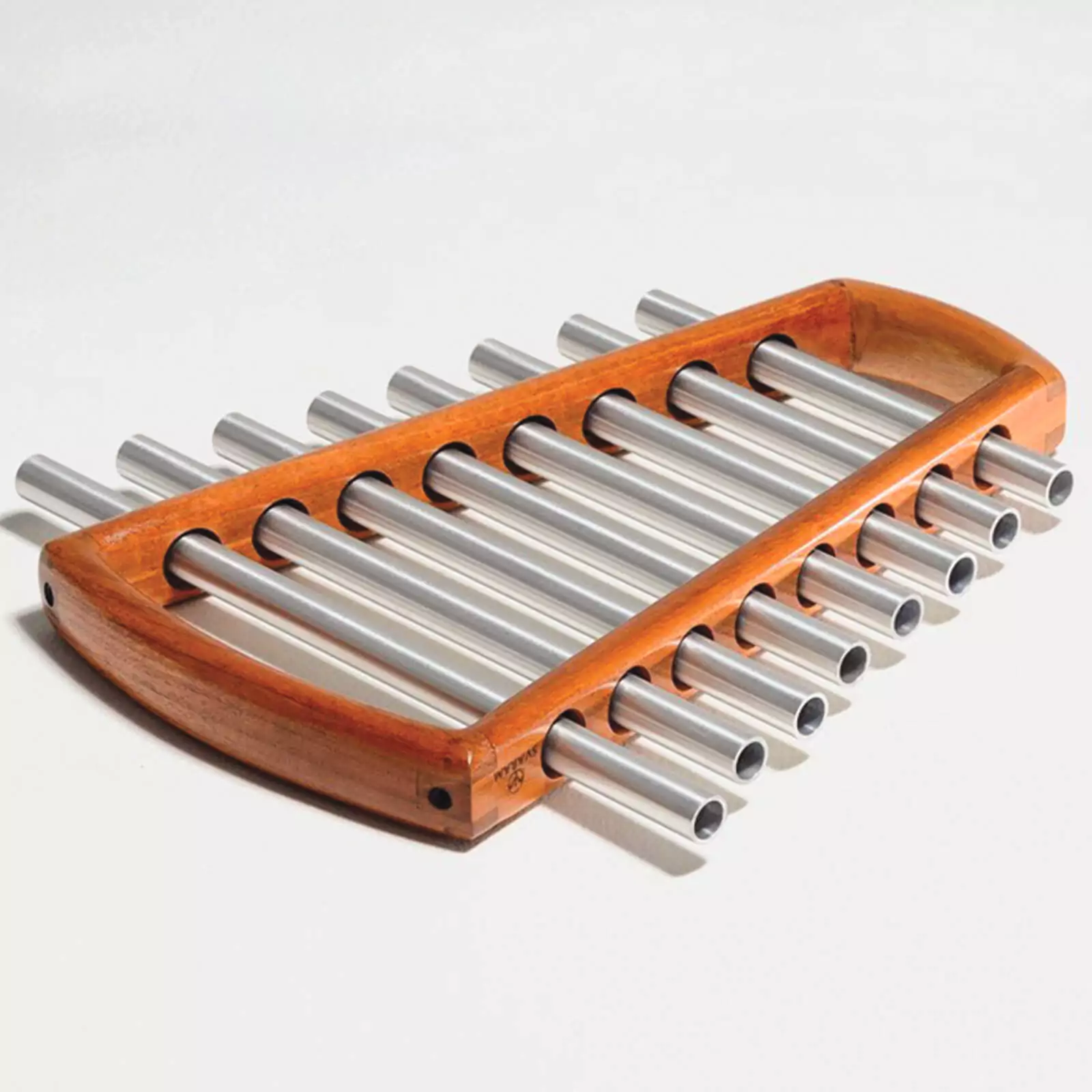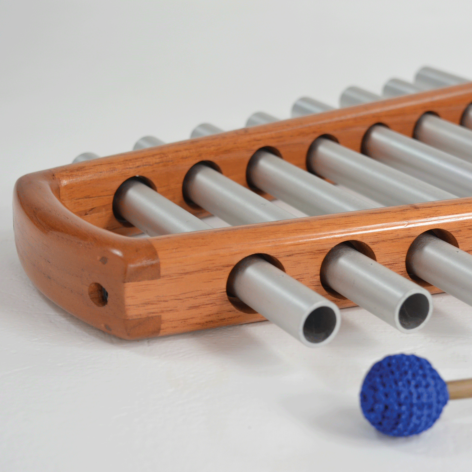 This is a novel development and we are happy to have found a simple design to satisfy a multipurpose use of this versatile sound source. The strong resonating quality of the tubes is equally attractive to the beginner as well as the creativity of a performer. A special feature is that it can be played and swung at the same time to create a captivating atmospheric sound in your environment.