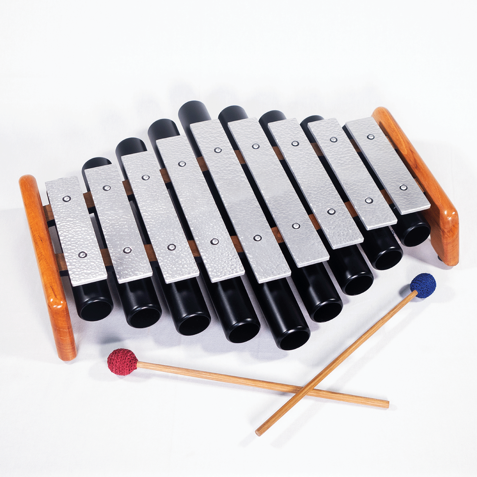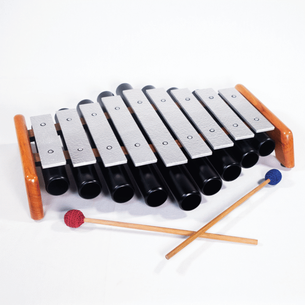 A metallophone in a primal ‘diamond’ tonal array – similar to the African Mbira in the right-left alternation scale. Using the 400 Hz drone to build up a scale of unusual proportions and a surprising widening and spacious effect on the attentive listener. The ideal instrument to reduce stress and open into a diamond clear vast perception.